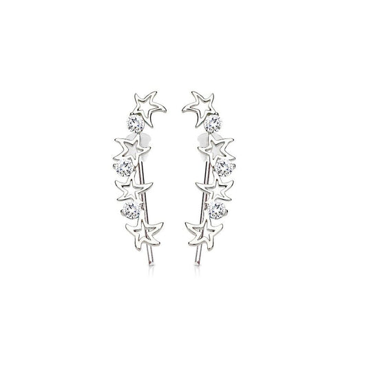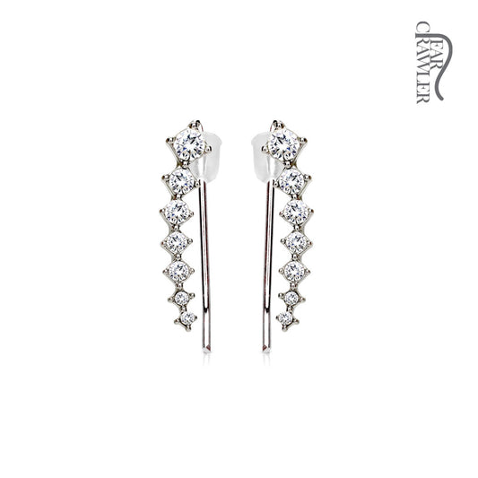 1 Paar Ear Crawler CRYSTAL STAR - Messing mit Rhodium-Überzug und Kristallen in Weiss - Ohrschmuck