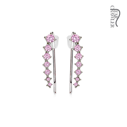 1 Paar Ear Crawler KRISTALLBOGEN - Messing mit Rhodium-Überzug und Kristallen in Rosa - Ohrschmuck