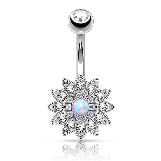 Bauchnabelpiercing PETITE CRYSTAL PAVED FLOWER aus 316L Chirurgenstahl mit Opal - Navel Piercing