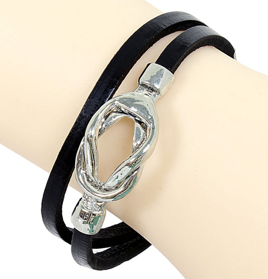 Armband - geflochtenes Leder in Schwarz - mit nautischem Knoten - Lederarmband