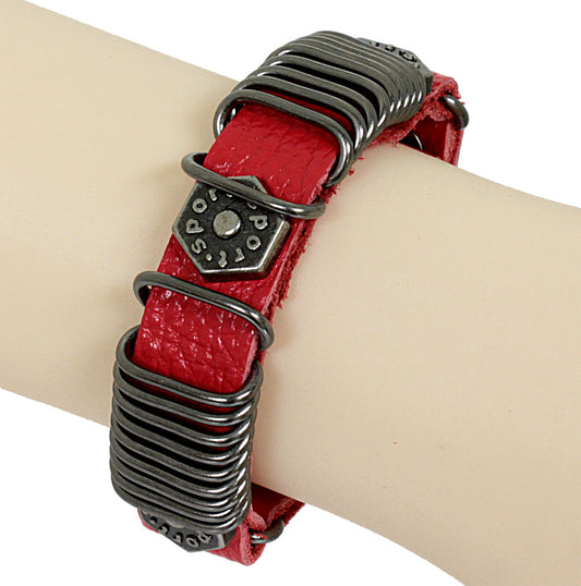 Armband - Leder in Rot - mit Sechskantschrauben und Druckknöpfen - Lederarmband