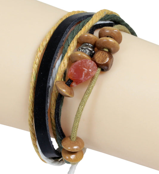 Rastafari Armband - Leder in bunt - mit gleitendem Knotenverschluß - Lederarmband
