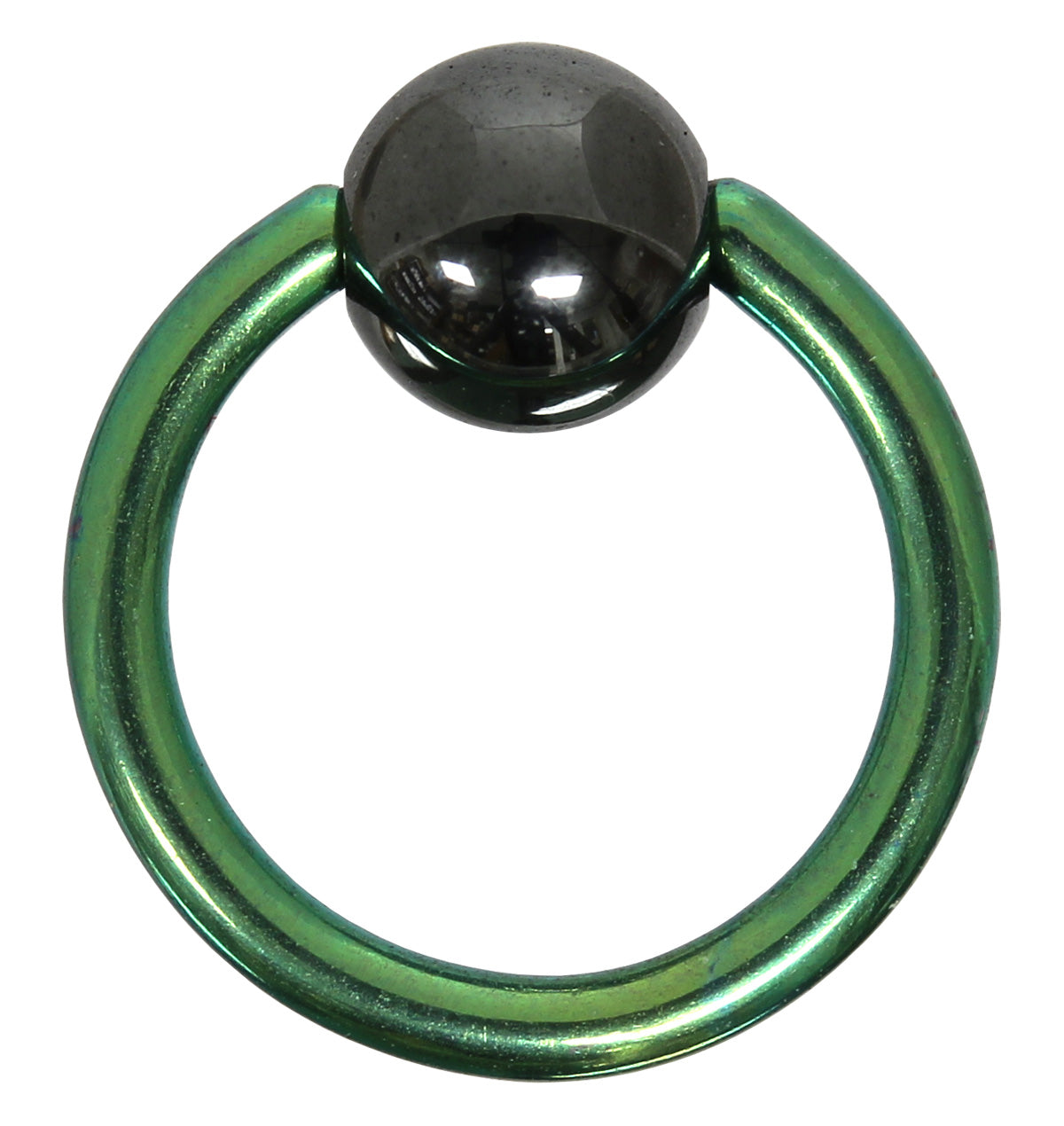 Der Klemmkugelring aus grünem G23 Titan mit Hämatitkugel ist ein hochwertiger Piercingschmuck, der Eleganz, Komfort und Funktionalität perfekt vereint. Ein stilvolles Accessoire für jedes Piercing.